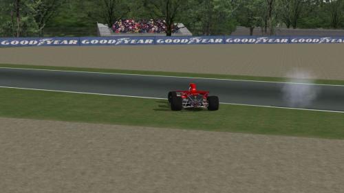 ��どのコーナーへ進入するにも、ブレーキが難しく、白煙が上がります。フラットスポットが再現されてるシムだったらとんでもないことになってますね。)